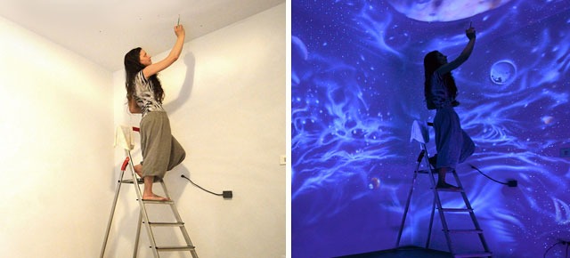 At the core of Fabian’s philosophy is the notion that reality is layered and subjective, that there are hidden truths beneath surface appearances. This belief has led her to create entire rooms, corridors, and ceilings that respond to changes in light and perspective, producing a temporal, emotional, and cognitive shift in the viewer. Her murals can transform a child’s bedroom into a galactic haven, or a sterile corridor into a forest of glowing dreams. She reimagines space not as a passive backdrop but as a transformative medium capable of altering consciousness.