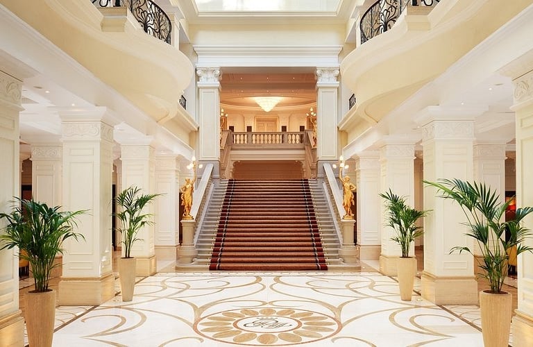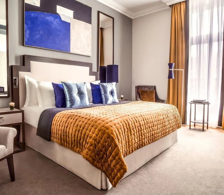 Inside Corinthia, interiors resonate with a blend of classical elegance and modern comfort, balancing original architectural features with refined contemporary design. Rooms and suites feature high ceilings, hand-finished moldings, and soft curtain fabrics in jewel tones that reflect Baroque opulence. Each guest room offers a marble bathroom, plush bedding, ergonomic desks, high-speed Wi-Fi, and Bose sound systems, ensuring modern comfort is matched with historic charisma. Suites often include separate living rooms, balconies overlooking Grand Boulevard, and period-inspired décor enriched by wide windows and spacious layouts. Whether staying in the Deluxe Room or the Ambassador Suite, guests awaken to the architectural narrative surrounding them—a palace reborn with every thoughtful comfort. The design philosophy centers on timeless sophistication, spatial generosity, and architectural continuity, allowing heritage lovers and modern travelers alike to enjoy a stay that feels both regal and seamlessly cocooned in luxury. The service quietly reinforces this experience: daily turn-downs, cultural welcome notes, and in-room treats that echo the building’s storied past while meeting contemporary expectations.