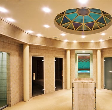 The architectural design of the Saliris Resort Spa is a deliberate conversation between modern wellness and natural aesthetics. Connected by a glass corridor to the Salt Hill terraces, the spa integrates luxurious infrastructure with rustic landscape, offering panoramic views of the white mineral formations from several pools. The building is clad in warm stone and wood, while interior pool halls feature high glazing to offer uninterrupted visual access to nature. Adventure and children’s pools are paired with serene physiotherapy zones, ensuring that both family visitors and those seeking quiet healing find suitable space. Sauna World—offering Finnish and Russian log saunas, thermium, steam, aroma cabins and diving pools—conducts themed sauna ceremonies such as ice, beer, honey, and salt rituals. These create a fusion of communal ritual and health discipline. By carefully staging transitions between thermal spring, sunset-lit terraces, and forested environment, the spa delivers a synthesis of architectural expression, sensory layering, health programming, design immersion, and cultural continuity.