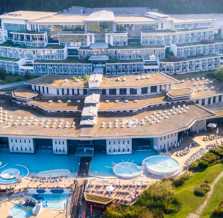 Egerszalók lies roughly 130 km northeast of Budapest, just a short drive from the historic baroque town of Eger, famous for wine (Bull’s Blood), fortress, and castle. The spa sits within a valley ringed by pine and beech forests, and visitors can enjoy nearby attractions like cave dwellings carved into tuff, a Baroque church dedicated to the Virgin Mary, or picnic among vineyards. Walking paths wind through the Salt Hill terraces and lead to gardens of herbs grown around the spa. The spa’s proximity to Eger ensures easy access to thermal resort town life and Hungarian wine culture. Saliris Resort, a four-star conference hotel, offers direct access to spa facilities and abuts the terraces themselves. With forest scenery, ambient air, and hillside spa pools, the environment reinforces the sense that Egerszalók is not just a health stop, but a destination for immersion in landscape, culture, and Hungarian rural elegance.