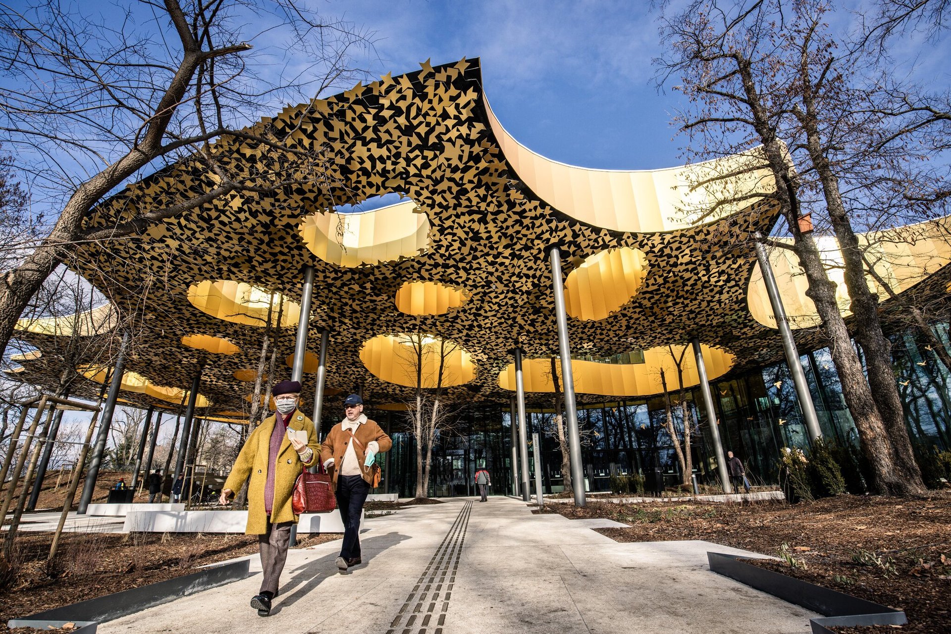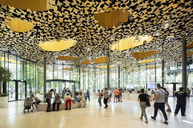 Sou Fujimoto’s creation defies definition: part concert hall, part interactive museum, part sanctuary. The structure refuses to impose itself on the park—instead, it nestles into it. From a distance, it appears like a shimmering pool of sound, as if music had liquefied and settled gently among the elms.