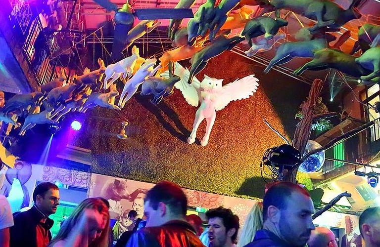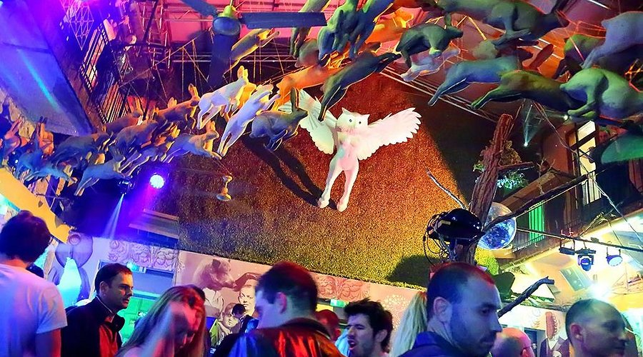Entering Instant‑Fogas is like stepping into a curated art installation in motion—eclectic décor, shifting light installations, oversized sculptures, and graffiti-saturated walls that blur the line between club and gallery. The complex comprises six or seven distinct dance zones—each offering different music genres, from old-school electronic in the Fogas area to rock n’ roll anthems in Robot, Latin beats in Frame, deep house in Level, R’n’B vibes in Unterwelt, and cozy lounge ambiance in Liebling. Across over 1,200 square meters of dance floors and 18 bar counters, there’s never a dull moment. The design intentionally evokes a sense of discovery: small courtyards, steps leading to underground chambers, garden terraces and hidden nooks encourage exploration, making every visit feel like uncovering secrets in a surreal urban playground.