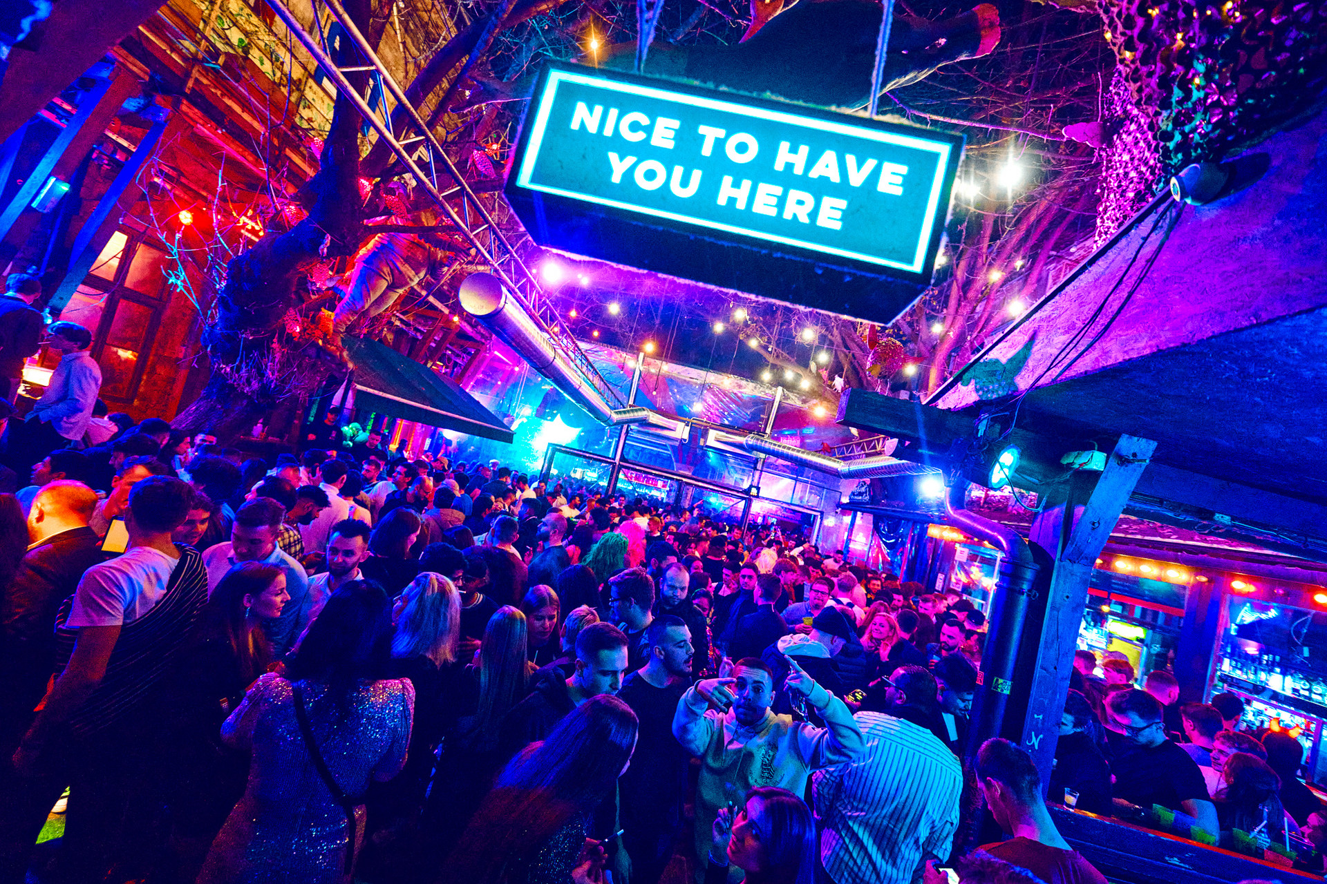 What makes Instant‑Fogas unique is its eclectic musical programming and its international audience. Every evening presents a different flavor: hip-hop, metal, techno, pop remixes, Latin rhythms, or indie live acts fill different rooms simultaneously. This musical diversity allows groups with varied tastes to split and reconvene, making it an ideal venue for friends and tourists alike. The crowd is as international as the playlist—locals, expats, and visitors mingle freely, drawn by the energy, the freedom, and the no‑cover or free-entry policy for most nights. As the night climaxes, the rooms pulse with lights synced to bass drops, while the garden terrace offers space to breathe, smoke, or chat away from the main dance pits.