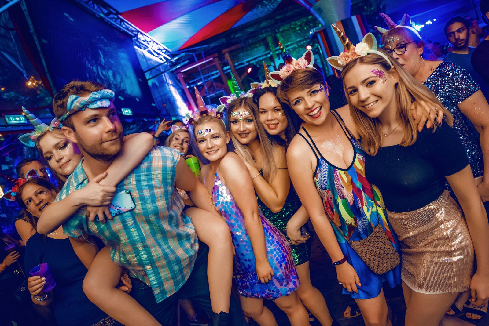 Across the complex, drink service is optimized for speed and convenience. With 18 bars scattered throughout, queues seldom bottleneck, even at peak hours. Drinks are served in reusable plastic cups with a token-and-deposit system: patrons pay a small refundable deposit for a cup and a token, keeping queues moving and reducing waste. The bar staff are efficient and often multilingual. While drinks are priced slightly above average, the quality and variety—spritzers, cocktails, local beers, spirits—match the venue’s energetic vibe. Food is available from minimal snack stations and external pop-ups, though it is not a highlight; the focus remains squarely on the party experience and fluid logistics between zones.