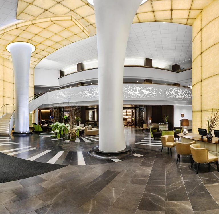 Kempinski Hotel Corvinus standing proudly in her contemporary façade is more than just a luxury hotel – she represents an intersection of modern architectural refinement, urban convenience, Hungarian creative collaboration, and comfort-forward design. Situated on the eastern side of Erzsébet tér and adjacent to de-facto central destinations like Deák Ferenc tér and the Danube bank, the hotel opened in 1992 following the democratic transformation of Hungary. Its design, a collaborative effort between local and international architects, resulted in a building that blends minimalist modernism with touches of Hungarian artistic flair. Soft stone cladding, glass façade segments, and sleek metal canopies merge into a refined appearance that contrasts with the surrounding Belle Époque structures. Inside, public spaces retain a clean, contemporary atmosphere punctuated by Hungarian art, striking sculpture installations, and changing exhibitions curated with local cultural organizations. The hotel's lobby evokes calm spaciousness, featuring modernist concrete-and-steel staircases and a curated art installation that communicates the nation's transition into global sophistication. These spaces reflect Kempinski’s philosophy: elegant efficiency, art-forward hospitality, comfort without nostalgia, and a refined welcome set in the beating heart of Budapest.