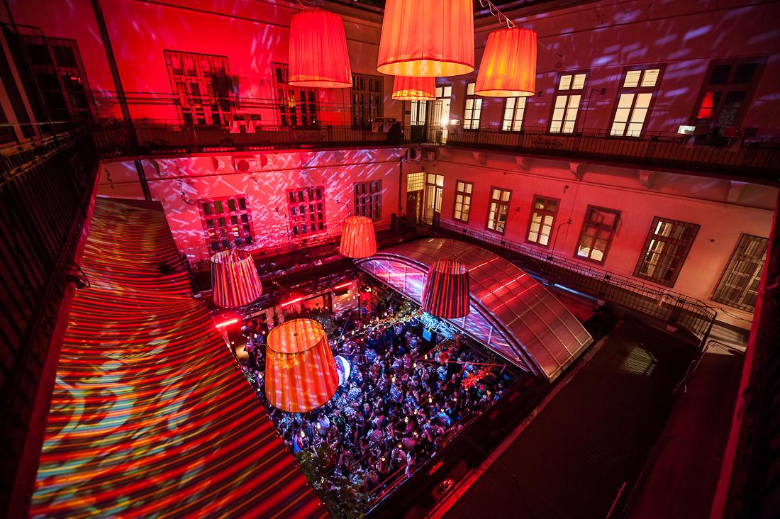 In the bustling epicenter of Budapest’s downtown area, Ötkert occupies a space with deep historical roots, once serving various commercial and civic functions in the city’s vibrant Józsefváros district. Today, the venue has been entirely reimagined as one of Budapest’s most celebrated urban garden bars, fusing elements of ruin-pub charm with modern hospitality flair. With a spacious courtyard lined by ivy-covered walls, glowing globes that hover overhead, and theatrical beams of colorful lighting that trace its corners at night, Ötkert offers a unique juxtaposition of old-world ambience and contemporary nightlife energy. In this transformed space, visitors experience an environment that feels both rooted in the city’s layered past and strikingly modern in presentation. The open-air central hall, represented by skylights and minimal structural intervention, adds a sense of airy expansiveness, while the original masonry and traces of past uses remain visible, anchoring the venue in heritage. Patrons arriving after dusk pass beneath a canopy of strings of lights, entering a verdant courtyard that blossoms into drama as music begins. The combination of architectural ambiance and curated design creates an immersive environment where casual evenings transform into memorable nights.