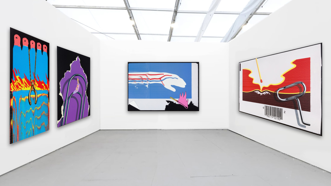 In 2025, Róbert Batykó’s acclaimed solo exhibition “Replay” at acb Gallery in Budapest opened in January and ran through February, showcasing the latest series of oil paintings and collage works. This exhibition emphasized his continued dialogue between digital form and painterly disruption, featuring large-scale canvases filled with abstract shapes, scraped surfaces, and heightened color palettes. In March–April 2024, his significant show “Image Trap” was also presented at acb Gallery, exploring vector illustrations decontextualized into painterly figures. In 2023, he participated in the Ludwig Museum’s “Y Profile: Young Artists from the Central Bank Collection” exhibition in Budapest (March–April 2025), presenting select paintings alongside other emerging Hungarian artists. Internationally, he returned to the Netherlands for a guest studio residency in Haarlem in late 2023, debuting new works at Art Rotterdam in early 2024 under the title “The Synthesis of the Digital and the Analog”, where he exhibited oil paintings and collages made with his scraping machine. These exhibitions collectively mark a consistent deepening of his conceptual approach and secured his position as a leading post‑digital painter.