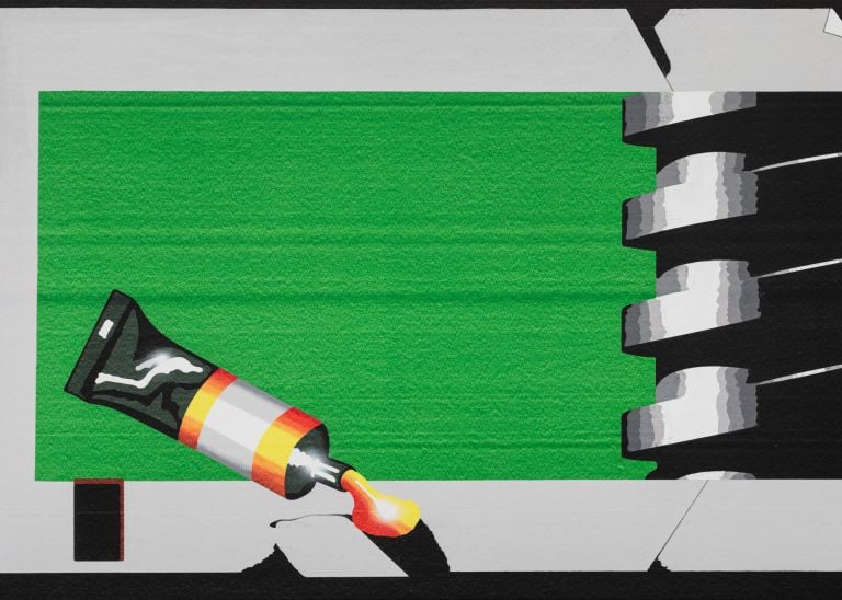 A pivotal part of Batykó’s practice is his self-built scraping mechanism which mechanically removes layers of paint at the final stage. This machine symbolizes his embrace of partial control and acceptances of serendipity. After meticulously painting over vector-based forms and found-image origins, he activates the machine and lets paint strip away. The result is unpredictable surfaces—scratched, smeared, and attenuated—revealing underlying layers like archaeological strata. The physicality of gesture intersects with digital delicacy: the tactile violence of the blade converts perfect vector precision into mud-like blurs and ghosted hints. These dynamic textures engage the viewer on a visceral level and raise questions about authorship, accident, and mechanical authorship. Batykó’s technique becomes a visual metaphor for how digital imagery erodes in our minds—value, clarity, and presence tensioned by removal.