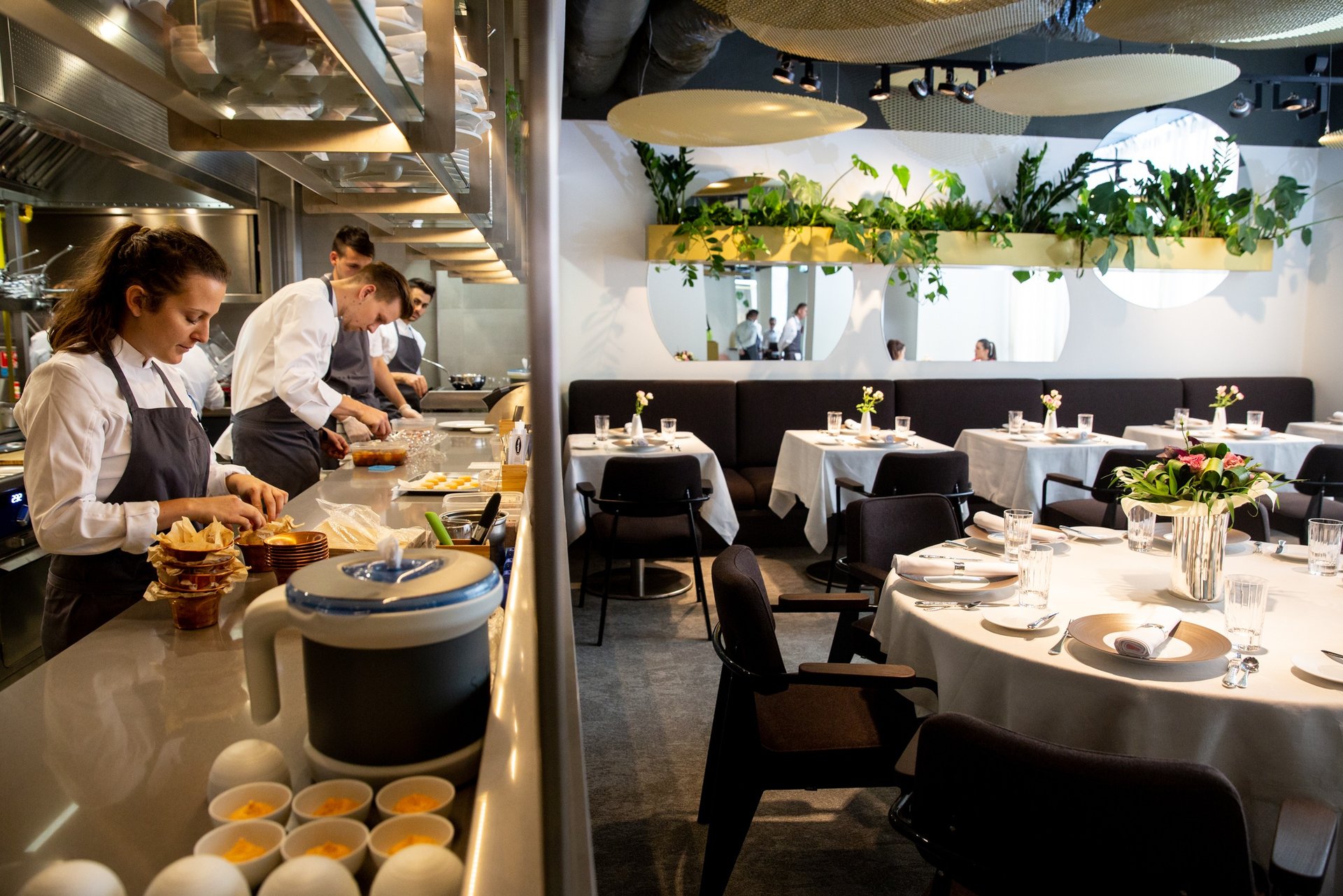 As you approach Székely Mihály utca 2, the façade may appear discreet, yet inside awaits an interior framed by marble and glass. The dining room is flanked by an open, glass‑walled kitchen, the beating heart of the restaurant, enabling guests to see a legion of cooks in silent choreography. The layout fosters an interactive energy: diners witness technique and timing unfold firsthand, while chefs perform their craft in measured precision.