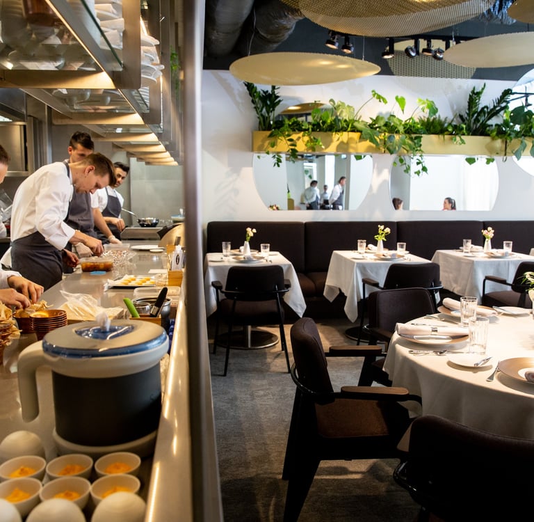Upon arrival, guests are welcomed into a calm vestibule leading to a modern, airy dining room. Cocktails and aperitifs may be offered, setting a tone of refined expectation. The chef unveils each course slowly: each dish arrives with a concise narrative—whether reflecting Széll’s childhood in rural Hungary, Szulló’s grandmother’s goulash, or the symbolic role of sterlet as an interface between freshwater ecosystems.