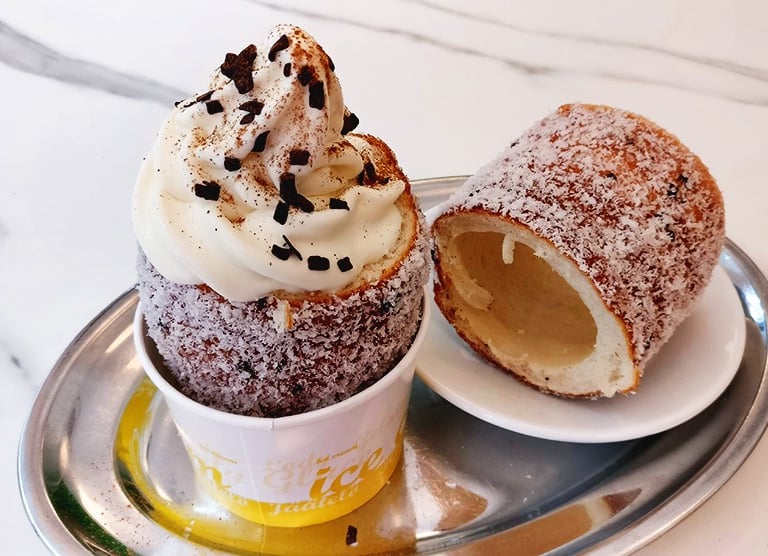 In recent years, kürtőskalács has undergone a renaissance, appearing not only in its classic form but also as a vehicle for modern culinary creativity. Some bakeries now serve it filled with fagylalt (ice cream), whipped cream, or even savory ingredients like cheese and ham. International food festivals have embraced it as Hungary’s answer to the donut or waffle cone, and Hungarian expatriates have brought the recipe to global cities where kürtőskalács trucks and stalls now flourish. Meanwhile, back home, organizations like the Kürtőskalács Fesztivál (Chimney Cake Festival) celebrate the pastry’s rich history and versatility, offering competitions, tastings, and masterclasses that keep the tradition both alive and evolving.
